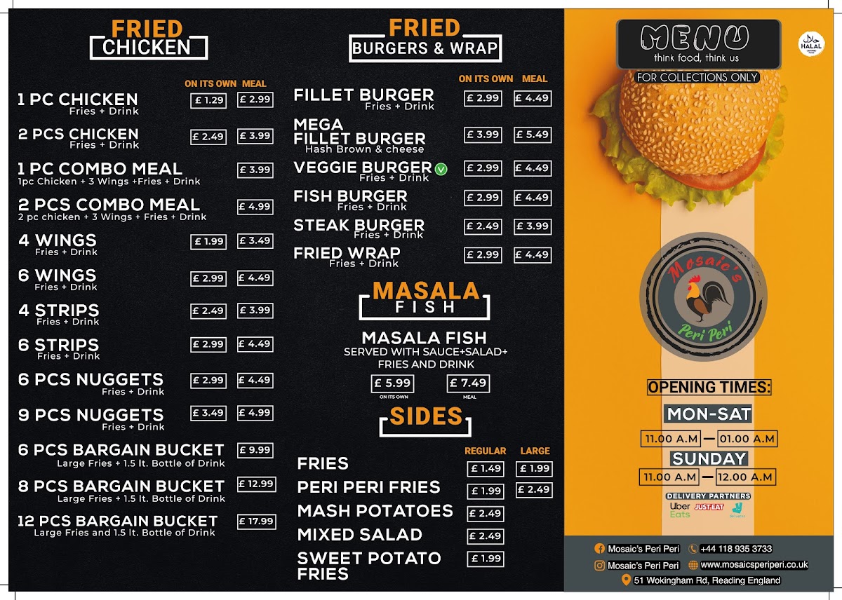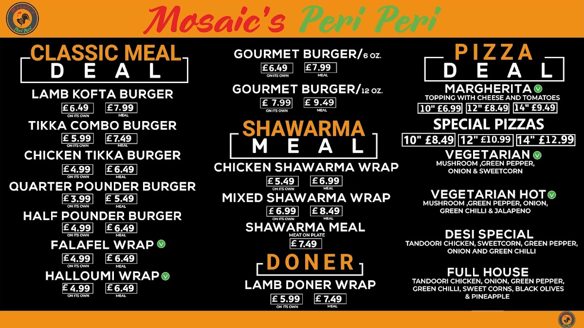 Welcome to Mosaic's Peri Peri, a culinary gem located at 51 Wokingham Rd, Reading. This brand is redefining fast food with its vibrant menu and tantalizing flavors. A standout feature is their Peri Peri Meal Deal, offering a variety of options like the delicious Breast Burger and juicy Half Chicken, all at unbeatable prices.